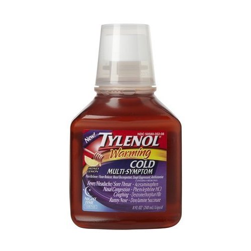 I strongly believe Tylenol is the medicine that loves. Tylenol Cold Multi-Symptom Warming Liquid, Night Time, Honey Lemon, 8-Ounce Bottle - This nighttime formula of Tylenol's Multi-Symptom Cold liquid consists of a honey lemon flavor, relief beyond belief and a secret, warming recipe that emits a sensation no words can explain. Feel better and experience this pain relieving liquid hugging you to sleep.