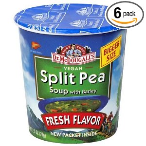 Dr. McDougall's Right Foods Vegan Split Pea Soup with Barley, 2.5-Ounce Cups (Pack of 6): John A. McDougall, M.D.--physician, nutrition expert, and founder of Dr. McDougall's Right Foods--has been studying, writing, and "speaking out" about the effects of nutrition on health for more than 20 years and is one of the "founding fathers" of modern wellness. Dr. McDougall believes that people should look and feel great, and should enjoy optimal health for a lifetime.