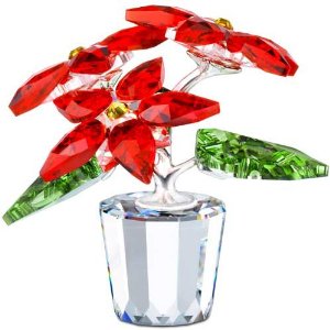 Swarovski's S905209: The leaves of the Poinsettia in faceted Light Siam and Peridot crystal with accents in Light Topaz crystal reflect the colors of Christmas. It thrives in its fully faceted clear crystal flowerpot. A beautiful decorative accent for any festive table, this stunning figurine measures 1-3/4" x 1-3/4".
