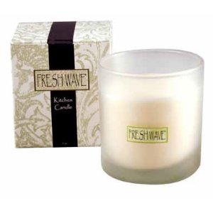 Fresh Wave Odor Neutralizing Kitchen Soy Candle, 7-Ounce: The entire Fresh Wave line features proprietary blends of natural extracts. This combination of lime, pine needle, aniseed, clove and cedar wood safely eliminates malodors without adding a masking fragrance or harsh chemical to your environment. Candles are the most effective way of dispensing this special odor neutralizing formula. So, for active families who love to cook at home with creative ingredients, have pets or children, it's the best product for eliminating odors. A perfect gift for any gourmet cook, the Fresh Wave Kitchen Candle is as beautiful as it is effective. To keep odors from fish, onions, garlic, curry and any pungent ingredient from lingering after your meal, simply burn the candle during preparation and again after eating. The 7 oz. ecru candle comes in a frosted glass that blends with any decor and it will look beautiful (and be effective) anywhere you may need strong odor neutralizing: in the bathroom, your workout room, a guest room, or the library.