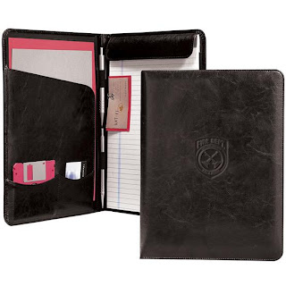 The interior of this classy, promotional padfolio reveals a multi-pocket organizer, includes an 8-1/2" x 11" writing pad and 2 pen loops. This 9-3/4"w x 12-1/2"h leather padfolio will exhibit your debossed logo attractively and provide a useful corporate amenity to the recipients of your gift.